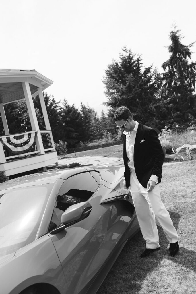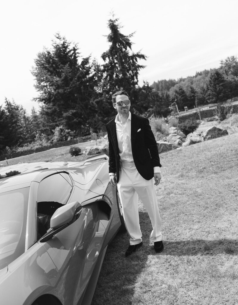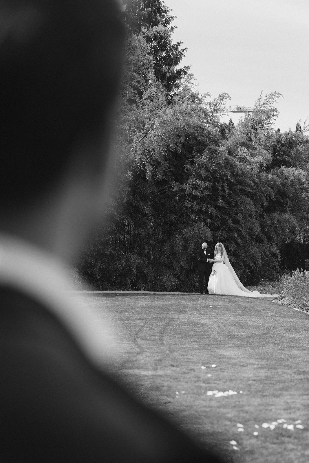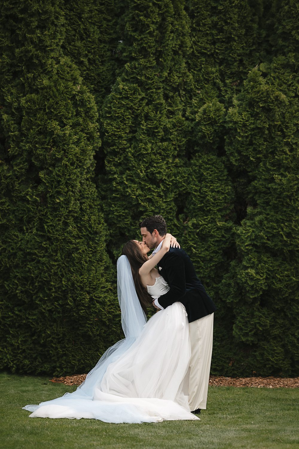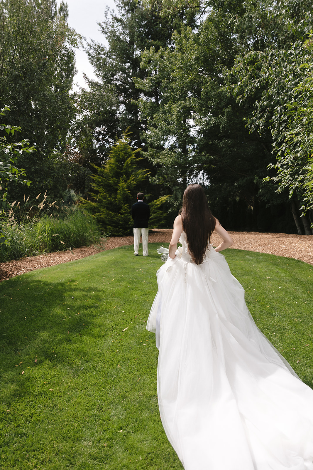 Hannah met up with her handsome groom in one of the many lush garden areas of Woodinville Lavender, leather flower in hand as they embraced one another in a sweet, private moment. Peter was ALL about the velvet jackets for the weekend, this time wearing a deep blue piece paired with beige trousers. They looked damn good as they strolled through the gardens, mingled with loved ones, and eventually went their separate ways just before the ceremony.