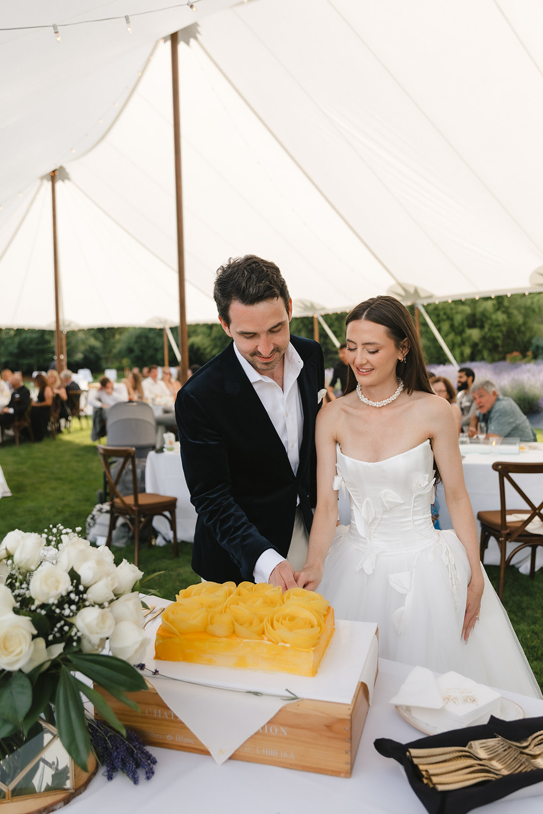 The weekend festivities kicked off with a lovely rehearsal dinner at the venue with their closest loved ones—highlights included: the endless boxes of Costco pizza in the kitchen, a competitive night of trivia, and the guest gift bags decorated with bags of fragrant lavender buds.