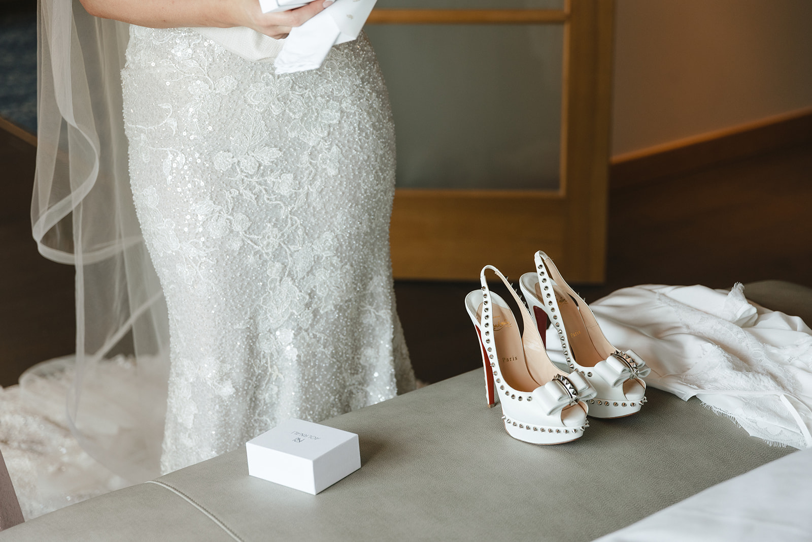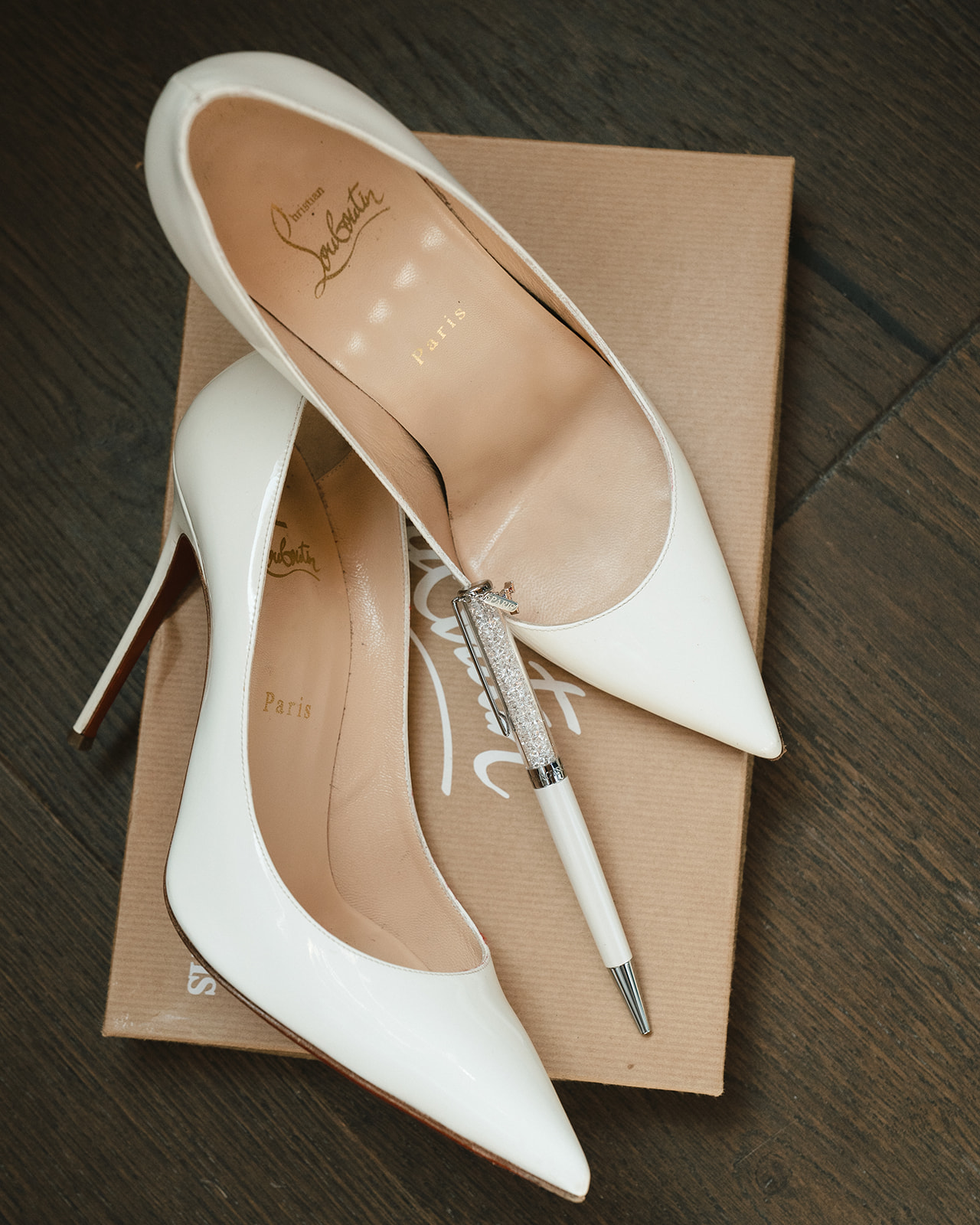 Nothing screams Alexandrae Photo like an entire section dedicated to Louboutins. Emily had already worn a pair of elegant white leather Louboutins for the ceremony, but she really said let’s add a little more of an edge for the rest of the night. Before portraits with her new hubby, she swapped her heels for chunky pumps studded with silver rhinestone spikes. Unreal.