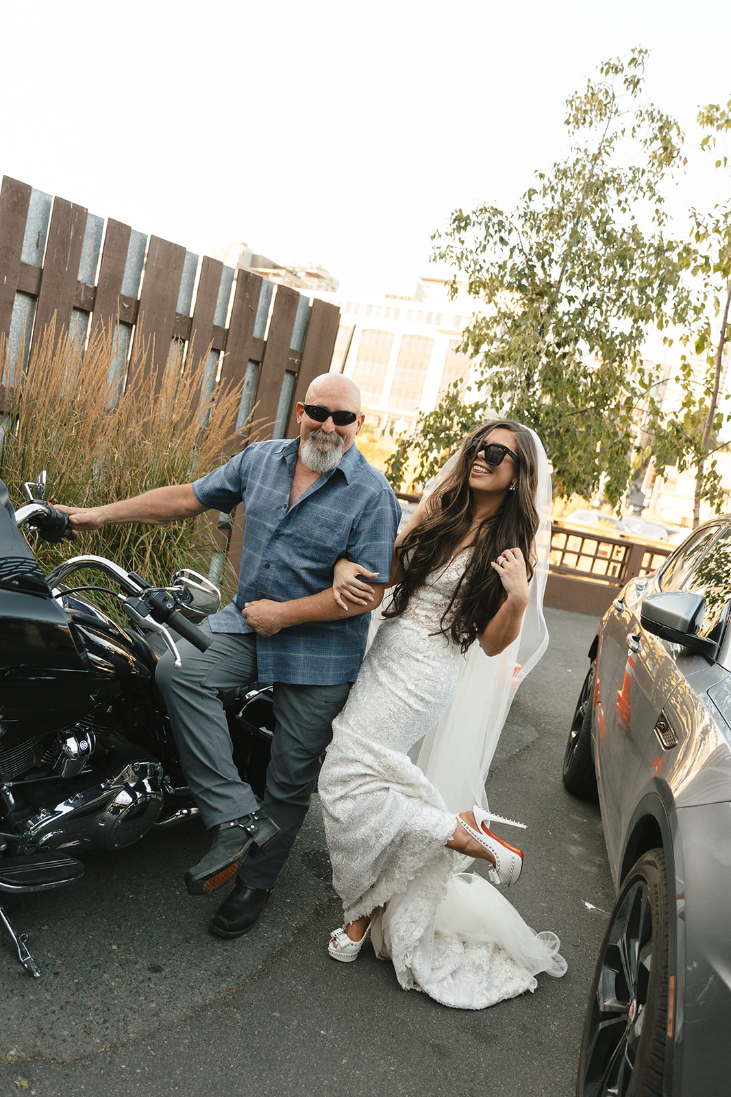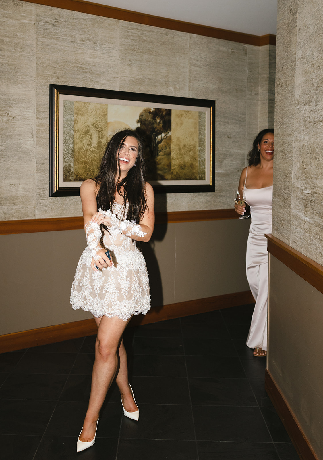 Emily surprised us all with an outfit change after dinner, swapping her gown for a more comfortable lace dress and her leather stilettos—just in time for the dance floor to pop off, and for the late night snacks to come out. What better way to end the night than with sliders, pretzels, fries, and a few romantic nighttime portraits in front of the city skyline? 🥂