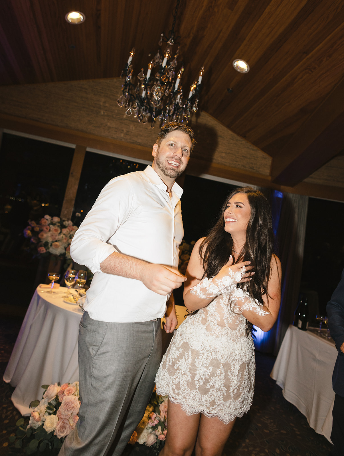 Mark had a pair of black Louboutin sneakers to match, so these two showed off their stylish accessories and attire as we wandered around the outskirts of the venue—along the waterfront, through the bar, and on the steps of the Band Entrance, of course. I could’ve stayed with these two forever, but we had a fabulous reception to get to.