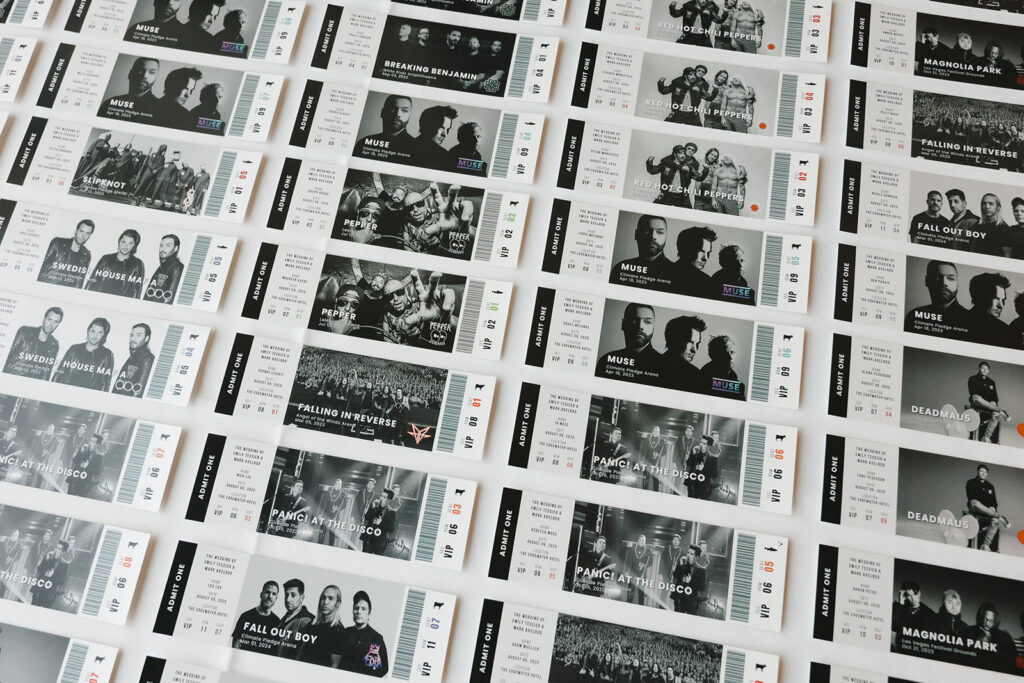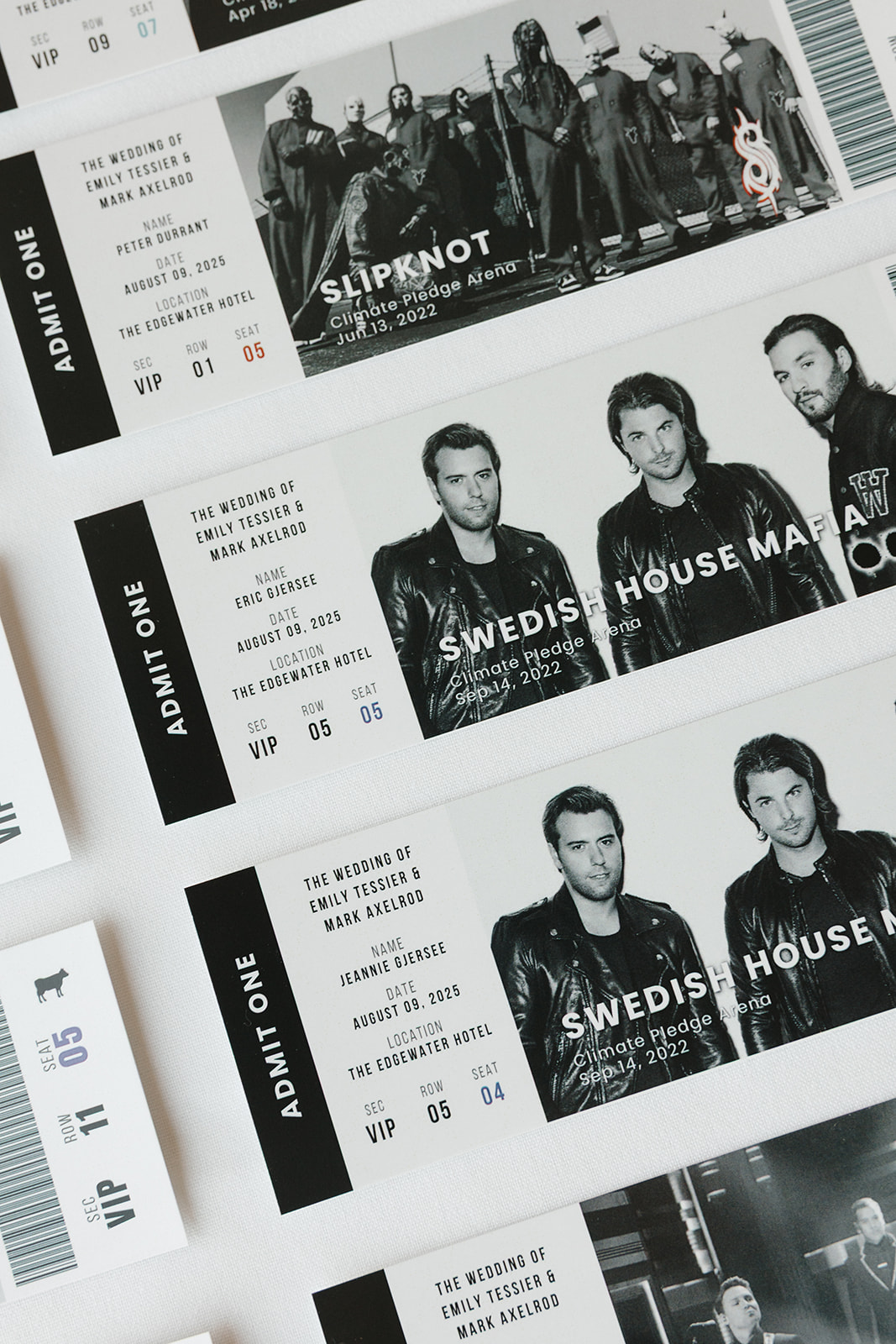 Their shared adoration for rock music and those ‘90s emo vibes we all know and love contributed to a wedding full of fun, unique details and decor: band vinyls scattered across their reception tables, inflatable guitars passed around on the dance floor, and the most unique seating chart you ever did see.