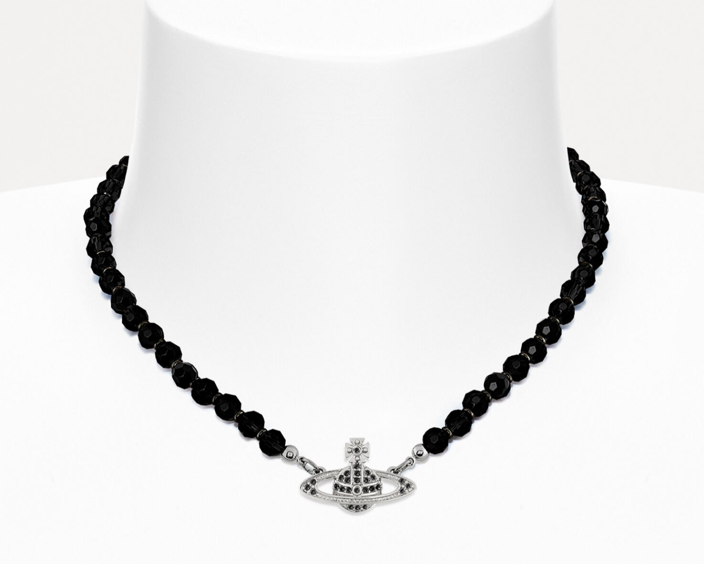 Or, for a more subtle look, opt for the Messaline Choker instead—featuring hand-knotted black agate crystals, a signature orb pendant, and jet black crystal embellishments.